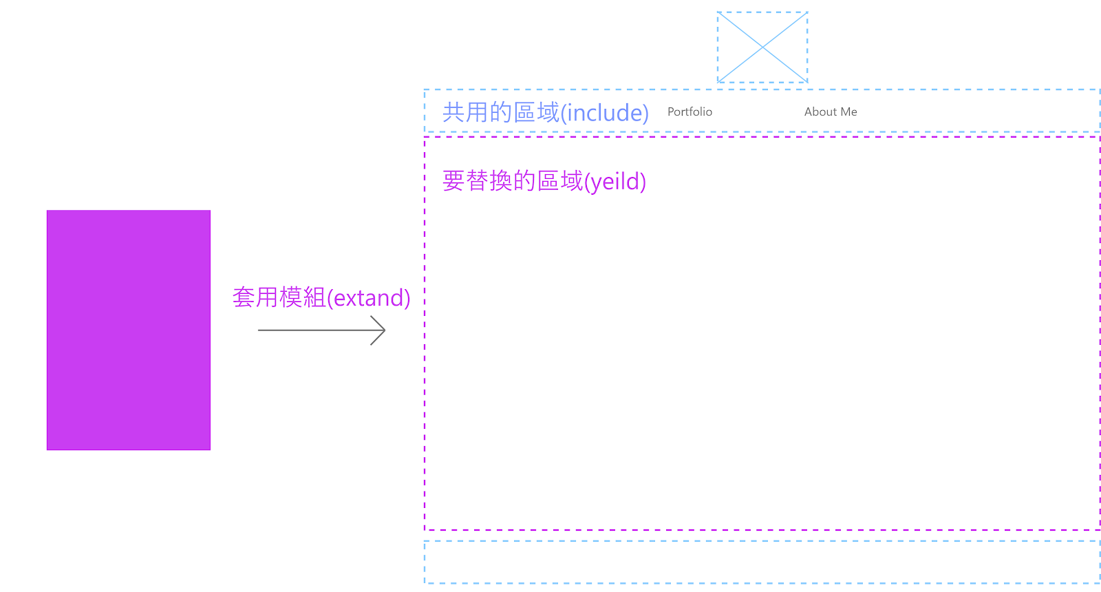 所以extand在這裡我會比喻成套用模組,在每一個紫色積木中都需要給套用的指令。