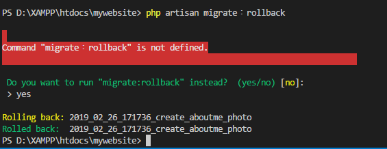 Php artisan migrate:rollback(還原上一個樣子的資料表)