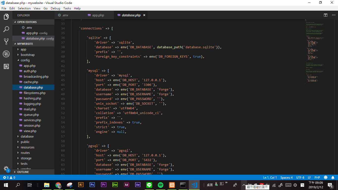 接下來點config裡的database.php,要修改’mysql’的資料: