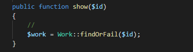 寫上$work = Work::findOrFail($id);