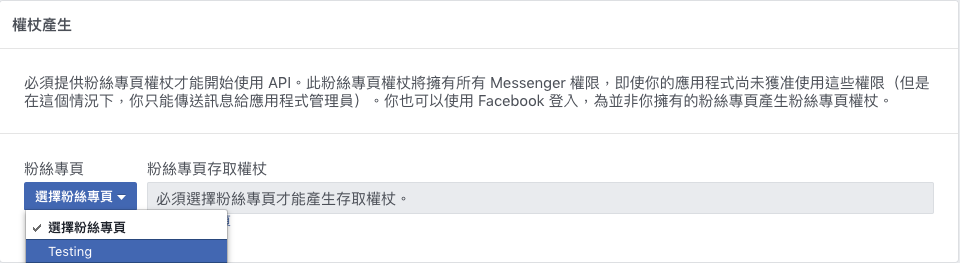 - 權杖產生 — 選擇粉絲專頁