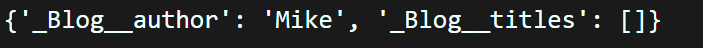 但是Python不像其他物件導向程式語言真的把屬性(Attribute)或方法(Method)變為私有,事實上來源端還是可以存取得到。我們先透過__dict__屬性來查看類別中的屬性(Attribute),如下範例: