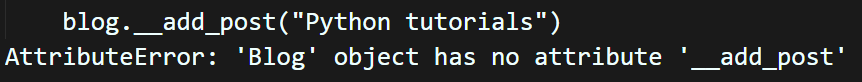範例中的來源端試圖存取私有方法(Private Method)而發生了例外錯誤。另外,和私有屬性(Private Attribute)同樣的原理,當我們在存取私有方法(Private Method)時加上底線類別名稱,還是可以進行呼叫,如下範例: